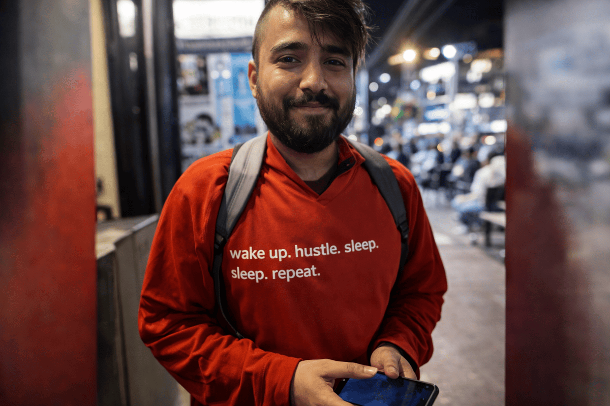 He clocked out from his exhausting day job, adjusted the straps of his worn-out backpack, and stepped into the noisy streets of the city—where life didn’t slow down just because his shift was over.